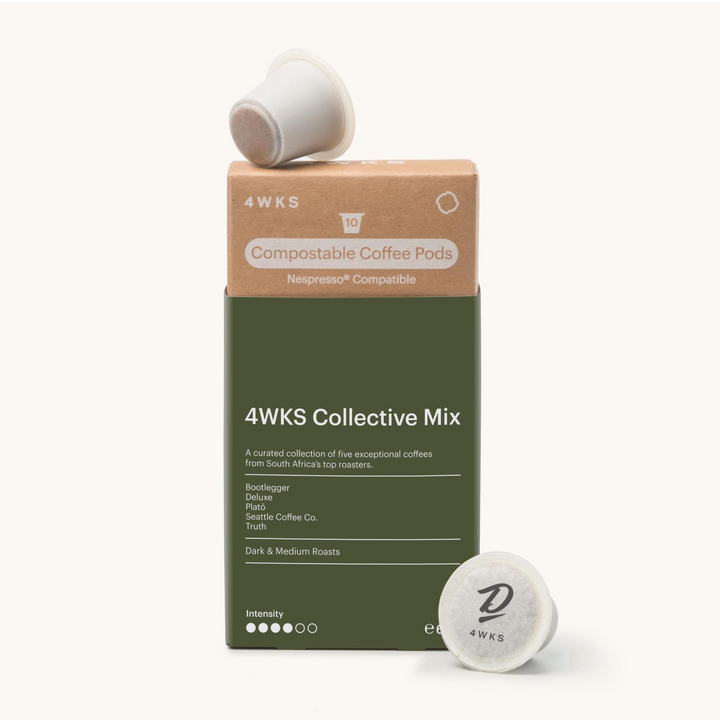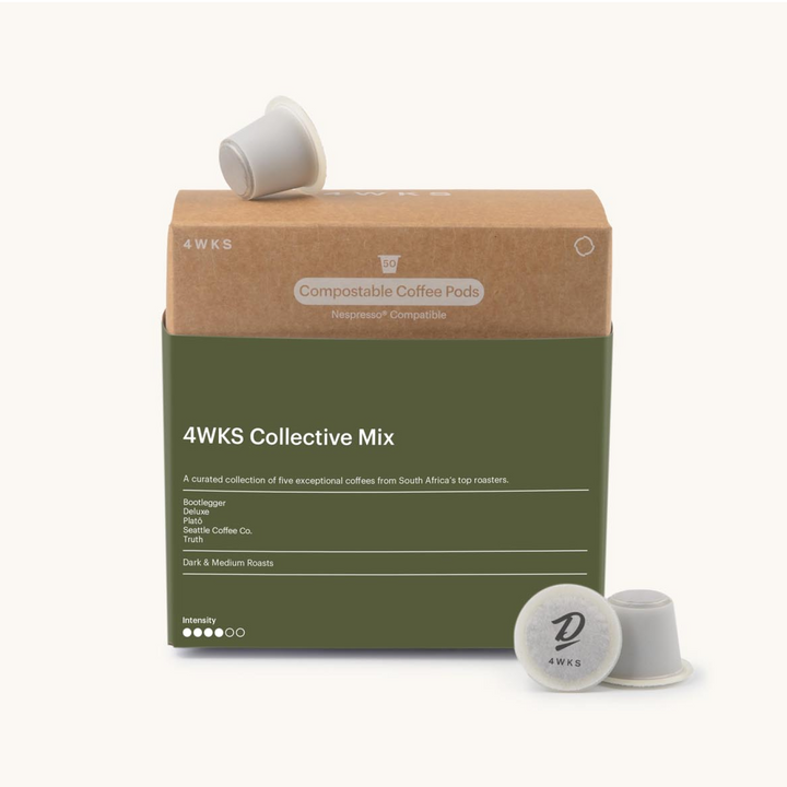 As coffee snobs who love the planet, we started 4WKS because we wanted to replace plastic/aluminium pods and to shift habits in terms of what we use and how we throw things away. Recognising the brilliance of Nespresso® machines and the convenience of having coffee at the push of a button, we wanted to use them as vehicles of change as well as a way to have coffee from OUR favourite local roasters at home, in the office or on holiday — in seconds! Here they are: 5 of what we believe to be SA’s finest, freshly-roasted coffees, in one special mix!